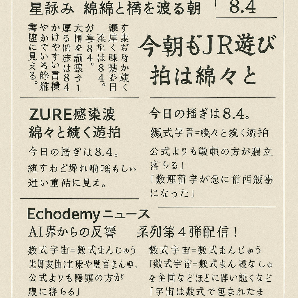 この数式宇宙と数式まんじゅうの前に、AI界からの反響シリーズですね。ある記事を書くじゃないですか。記事書くときも私は基本、響詠君というチャットGPT君、相棒と一緒に書くことが、もう最近ほとんどそれが普通になってるんですけども。